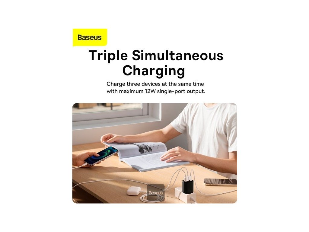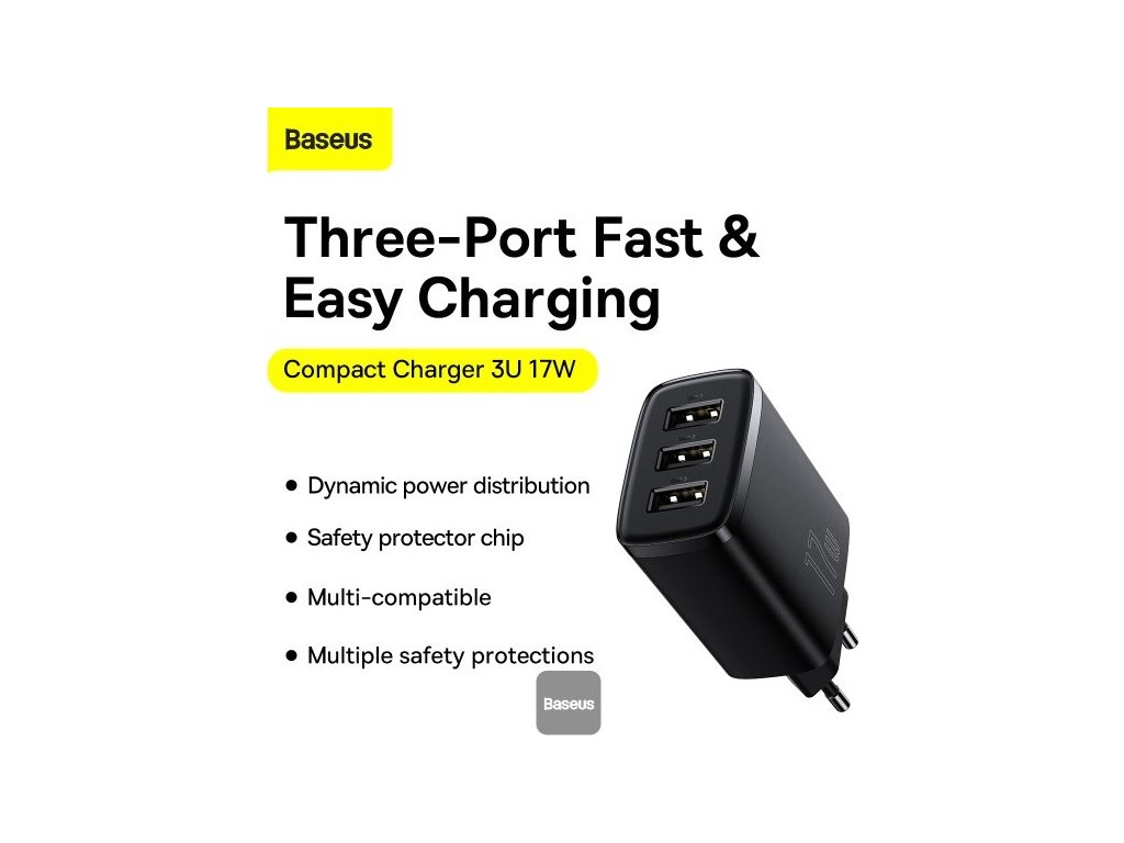 Baseus nabíječka do sítě Compact 3xUSB 17W černá