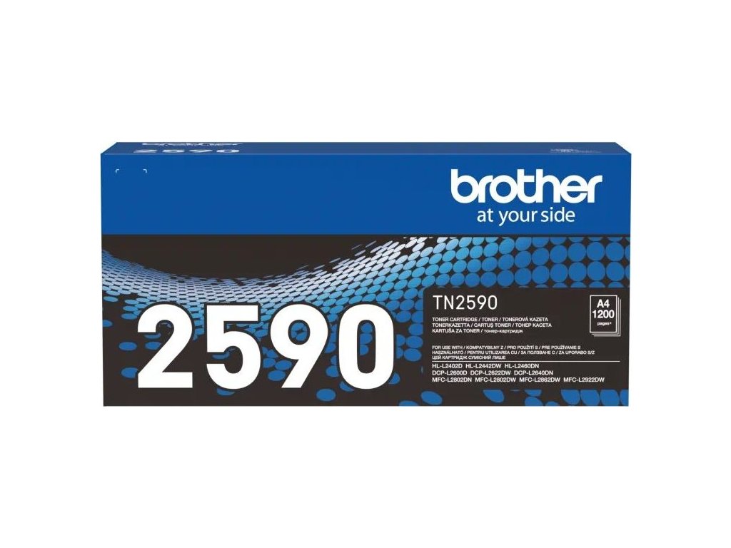 Černá tonerová kazeta Brother TN2590. Vytiskne až 1 200 stran.