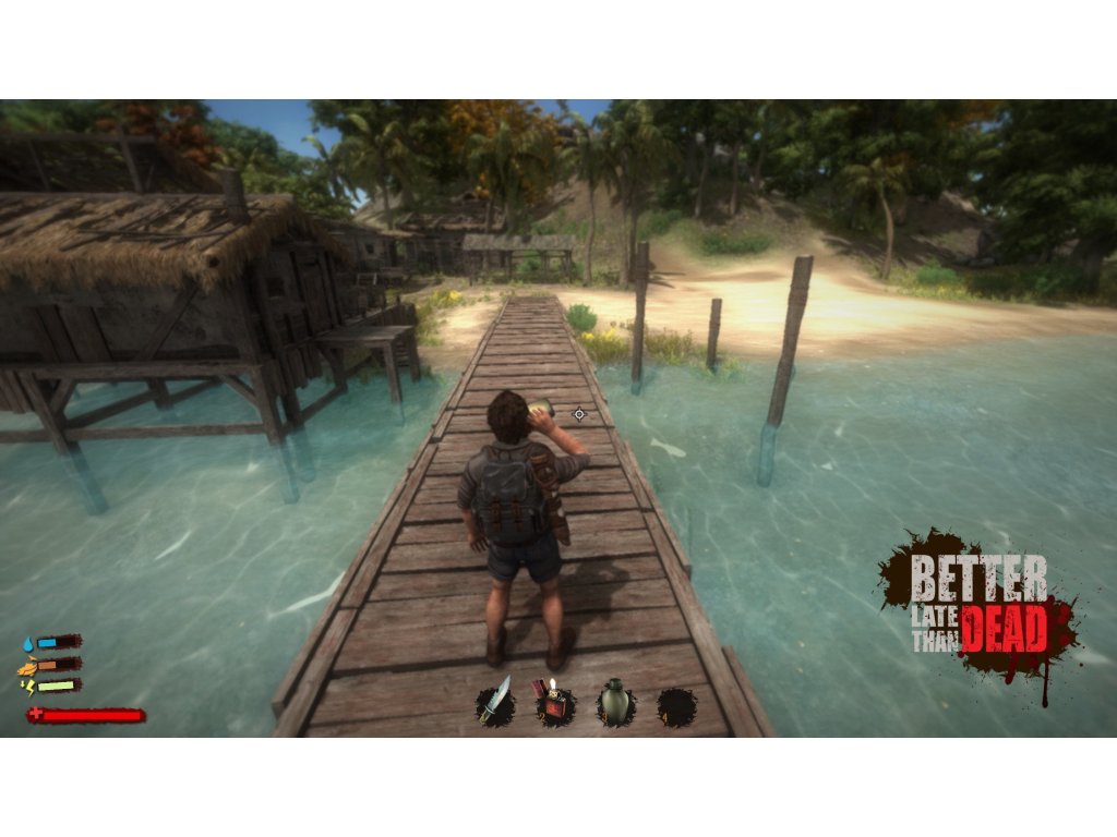 V survival akční hře Better Late Than DEAD budete trosečníkem na ostrově. Po probuzení si nebudete nic pamatovat, ale vkapse objevíte fotografii dítěte. Začínáse putování po ostrově s cílem odhalitjeho tajemství a najít únikovou cestu. Vše bude vnímáno z pohledu první i třetíosoby a hra zahrne systém výroby předmětů inspirovaný klasickými point and clickadventurami. Nové předměty se budou vyrábět pomocí příkazů. Ve hře Better LateThan DEAD se používá sandboxových styl asurvival prvky, jako hledání přístřeší,zahánění hladu a žízně, ale i divoké zvěře. Postava může krvácet, bude mít zlomeniny nebo se otráví, ohrozí ji vlky, hady a ve vodě žraloci. Zakomponovaná budepermanentní smrt. Z ostrova se bude možné dostat po vyhledání klíčových, procedurální generovaných předmětů.