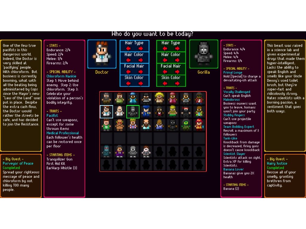 Hrajte za více než 20 typů postav, jakobarman, vědec, hacker a atd. Když si nazačátku zvolíte povolání vraha, nepřátele likvidujete zezadu. Když zvolíte vojáka, dostanete nějakou zbraň, nášlapné miny a hoc i nálož, kterou můžete nastražitna libovolné dveře. Kromě cílových osoba míst na každé mapě najdete spoustu neutrálních postaviček. Obyvatelé slumů sek vám za nějaký peníz připojí, doktořivás vyléčí, u obchodníka nakoupíte zásoby. Když si za povolání zvolíte člena určitého gangu, můžete jeho členy do bojů zapojit zdarma.