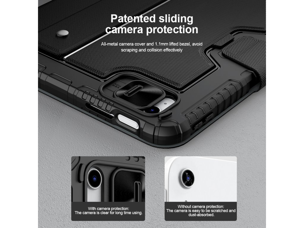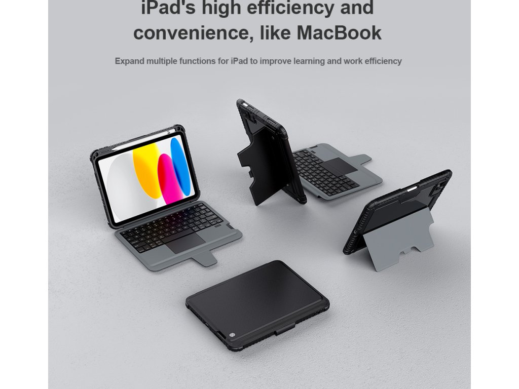 Nillkin Bumper Combo Keyboard Case je víceúčelový ochranný kryt tabletu s klávesnicí, slotem pro Apple Pencil s automatickým nabíjením a plynule nastavitelným úhlem tabletu.