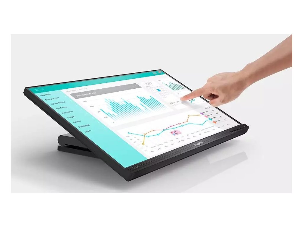 Odolná dotyková antireflexní obrazovka pro flexibilní použití, s otočným stojanem a nastavením úhlu podle potřeby. Pokročilá technologie In-Cell Touch (AIT) nabízí tenčí vzhled, vynikající citlivost na dotek pro rychlou odezvu a vynikající a zřetelnější viditelnost.