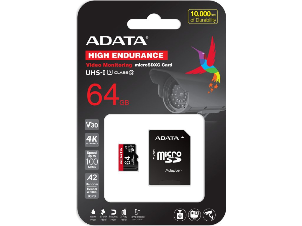 Paměťové karty ADATA High Endurance microSDXC/SDHC UHS-I jsou paměťové karty s vysokou odolností a rychlostní třídou videa 30 (V30), které jsou speciálně navrženy pro nepřetržité nahrávání a neustálé opakované nahrávání. Jsou ideální pro autokamery a sledovací systémy. Navíc díky klasifikaci Application Performance Class 2 (A2) mohou uživatelům poskytnout rychlejší a plynulejší práci s aplikacemi.