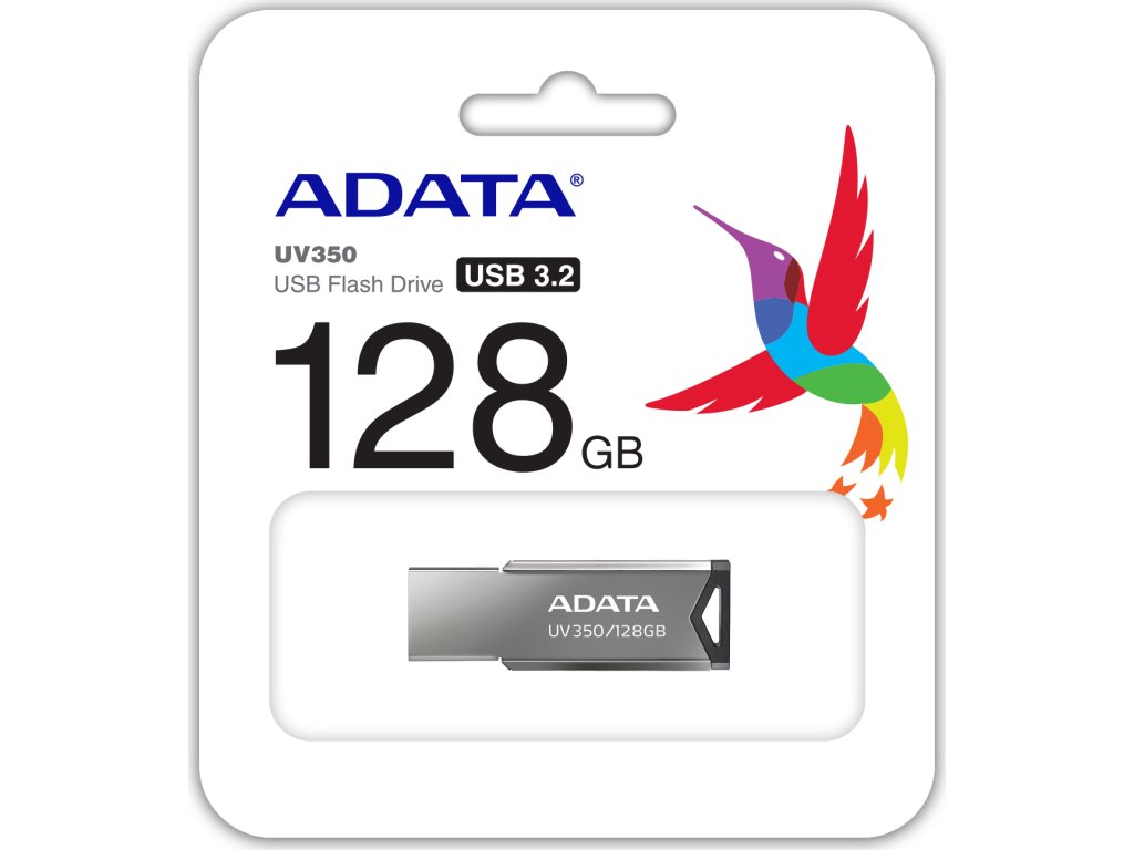 ADATA UV350 128 GBFlashdisk s kapacitou 128 GB v elegantním kovovém provedení. Díky praktickému očku je možné umístit disk například na svazek klíčů. Rozhraní USB 3.2 Gen1 dosahuje až 10× vyšší přenosové rychlosti oproti diskům s USB 2.0.