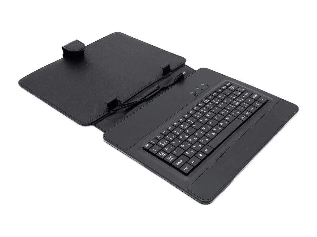 Koženkové universální pouzdro pro tablety 9,7" s vestavěnou USB klávesnicí a konektorem microUSB.