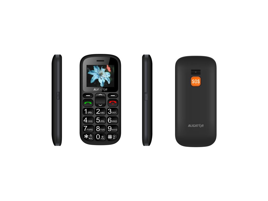 Klasický telefon pro seniory s SOS tlačítkem, možností obrázkového tel. seznamu a funkcí určení polohy SOS locator,