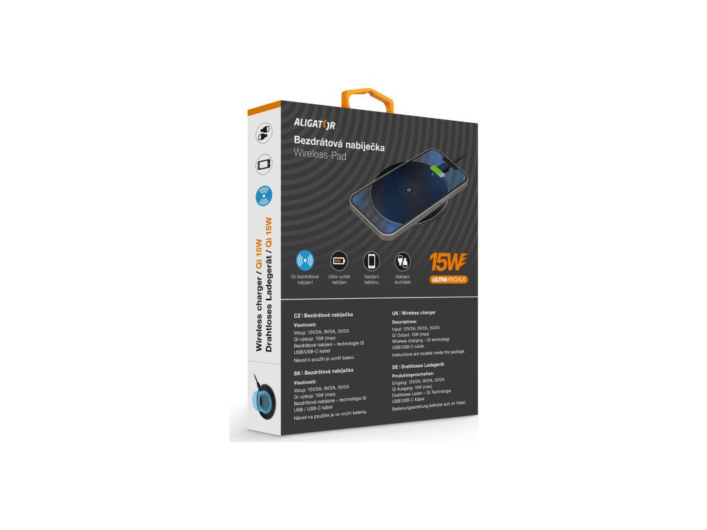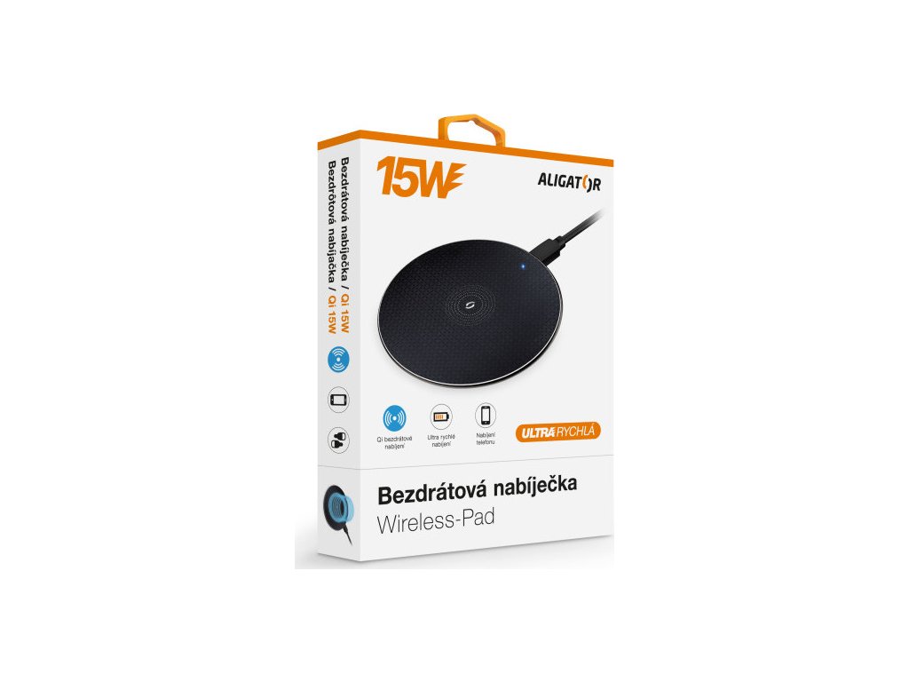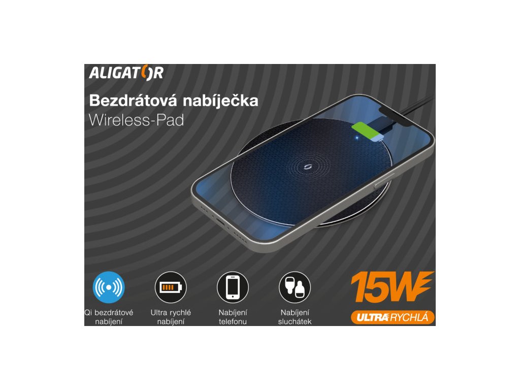 Technologie Qi používá k přenosu elektrické energie elektromagnetické pole s adaptivním řízením výkonu. Díky tomu je možné bezpečně a snadno nabíjet telefon nebo sluchátka. Aligator Wireless-Pad umožňuje bezdrátově nabíjet moderní telefony výkonem až 15W, což je 6x více než u základní USB nabíječky!