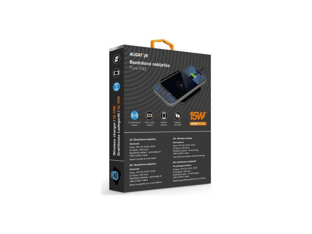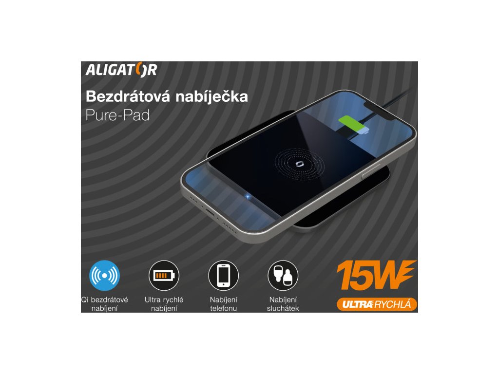 ALIGATOR bezdrátová nabíječka Aligator Pure-Pad 15W, černá