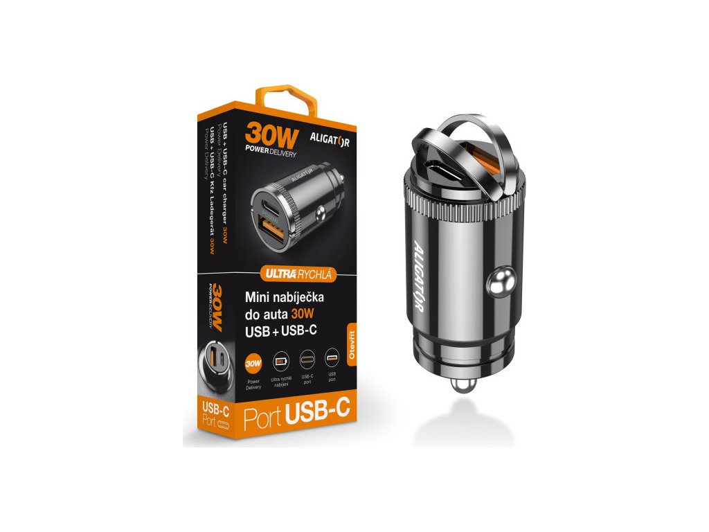 Aligator mini nabíječka do auta Power Delivery 30W, USB-C + USB-A