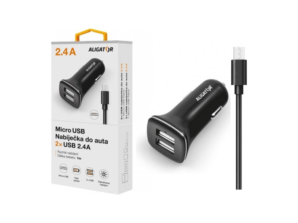 ALIGATOR Nabí. do auta microUSB 2,4A TCH černá