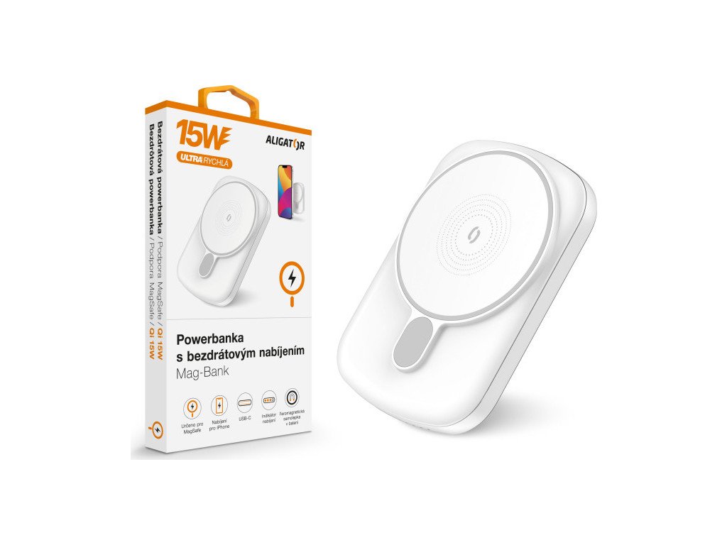 ALIGATOR Powerbanka s bezdrátovým nabíjením ALIGATOR Mag-Bank, určeno pro Magsafe, 5000mAh, bílá