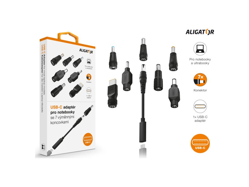 Miniaturní USB-C adaptér se 7 výměnnými konektory řady ALIGATOR POWER.