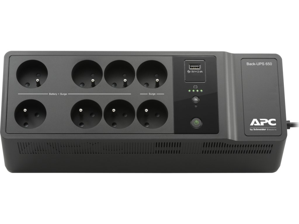 APC Back-UPS 650VA, 230V, 1USB charging port. Bateriový záložní zdroj s ochranou proti přepětí pro elektronická zařízení a počítače.