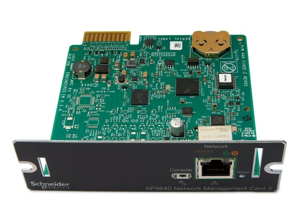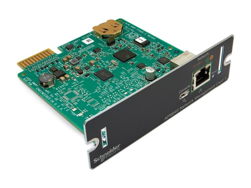 APC UPS Network Management Card 3 AP9640Síťová karta pro vzdálené monitorování a řízení jednotlivého zdroje UPS díky jeho přímému připojení do sítě. Nabízí vzdálenou správu pomocí protokolů telnet a SSH, zabezpečené připojení prostřednictvím protokolu HTTPS/SSL, SSH (až 2048bitové šifrování) a SNMP verze 3. Modul dále podporuje reporting informací o UPS systémům správy budovy nebo jiným řídícím systémům třetí strany prostřednictvím protokolu Modbus TCP, přístup přes webový prohlížeč až pro 8 uživatelů najednou a přes síťové rozhraní příkazového řádku až pro 3 uživatele najednou.