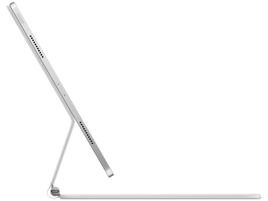 Magic Keyboard je dokonalý doplněk 12,9palcového iPadu Pro. Výborně se na něm píše, má trackpad s novými možnostmi ovládání iPadOS a taky USB-C port na nabíjení iPadu. Chrání ho zepředu i zezadu. iPad Pro se k plovoucí konzolové konstrukci Magic Keyboardu přichycuje magneticky, takže ho hladce nastavíš přesně do takového úhlu, ve kterém se ti na něj dívá nejlíp.