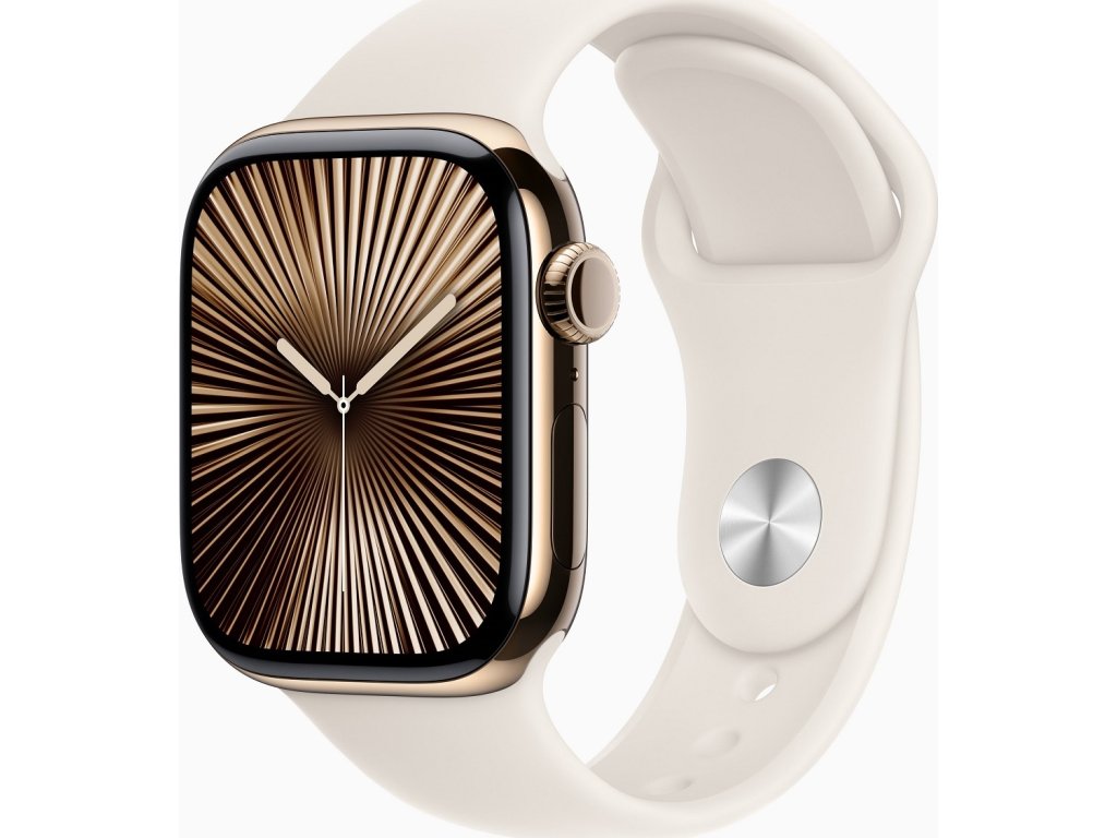 Apple Watch Series 10 GPS + Cellular 42mm Zlatý titan s hvězdně bílým sportovním řemínkem - S/M