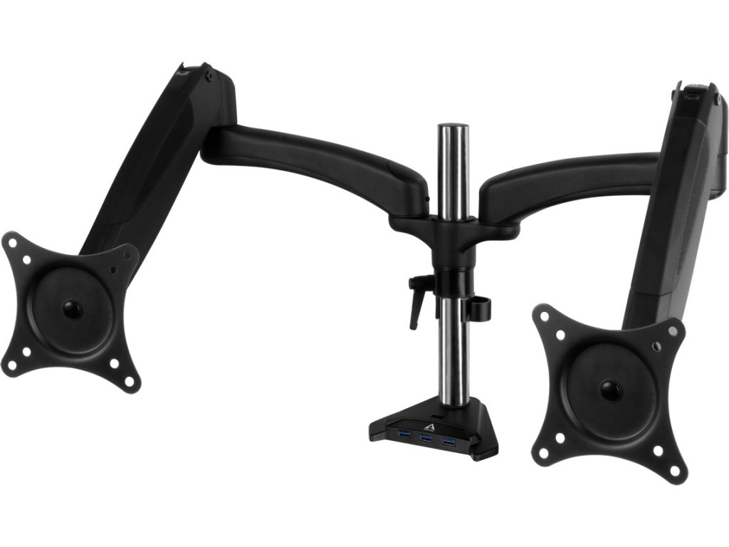 Kvalitní 3D držák pro 2 monitory s možností dalšího rozšíření o další a plynovým rameny pro lehké ovládání.
