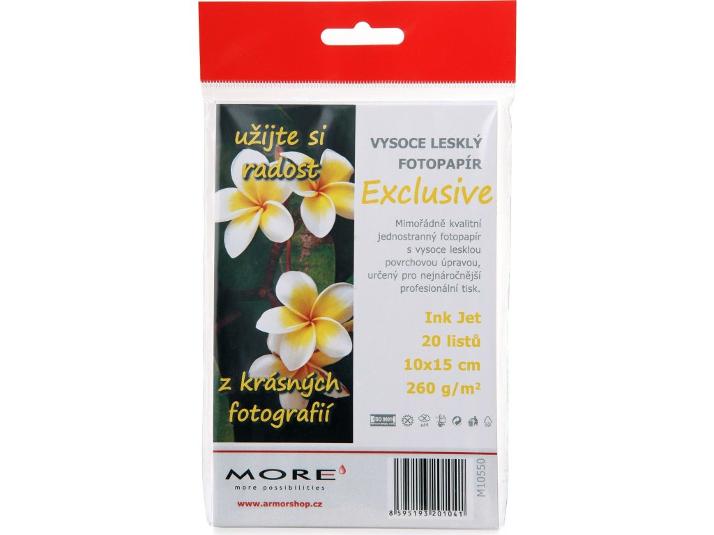 ARMOR Fotopapír MORE Exclusive je předurčen pro kvalitní i ten nejnáročnější tisk fotografií v inkoustových tiskárnách. Jedná se o jednostranně potahovaný fotopapír s vysoce lesklou povrchovou úpravou, díky které mají fotografie vždy vysoký kontrast při zachování přirozených barev.