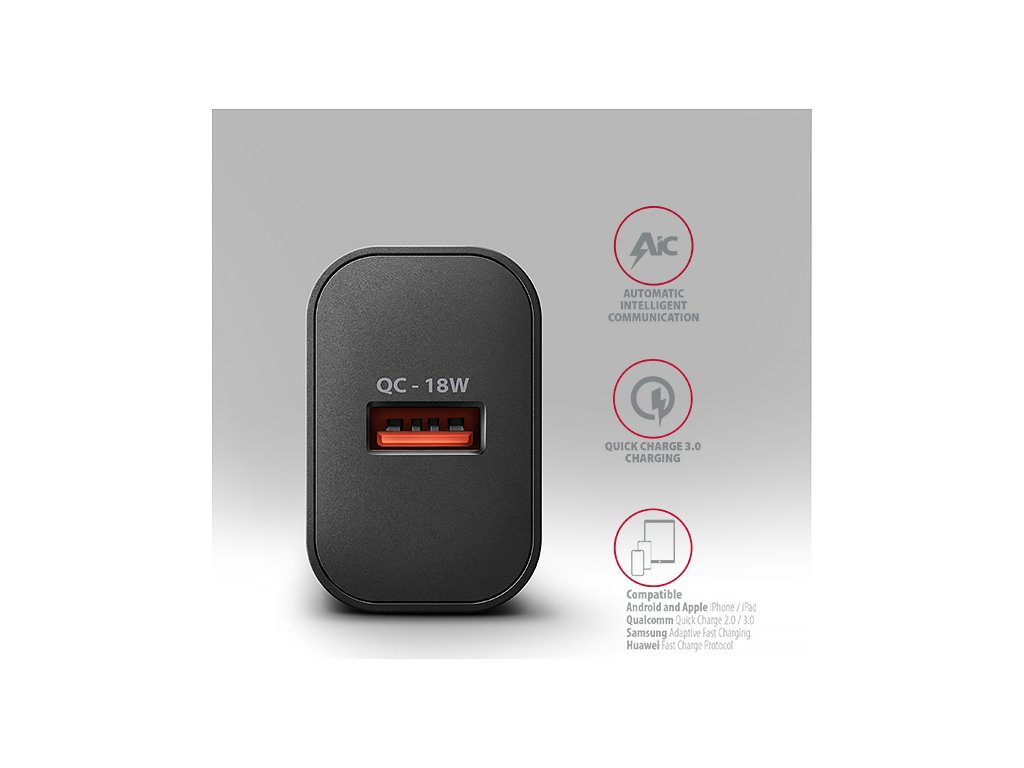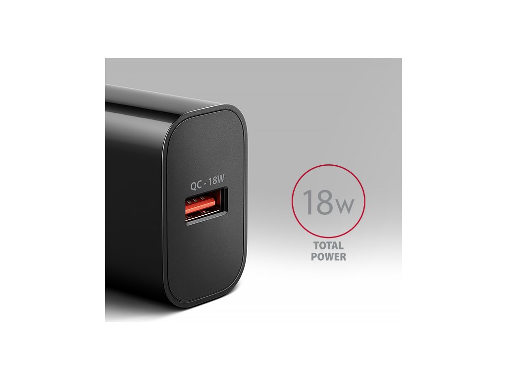 Nabíječka je vybavena výstupem Quick Charge 3.0 USB typu A, což umožňuje rychlé nabíjení smartphonů a tabletů výkonem až 18W. Adaptér je také kompatibilní s dalšími standardy rychlého nabíjení telefonů, jako jsou Apple iPhone, iPad, Samsung, Huawei, Honor, Xiaomi, Motorola a dalších.