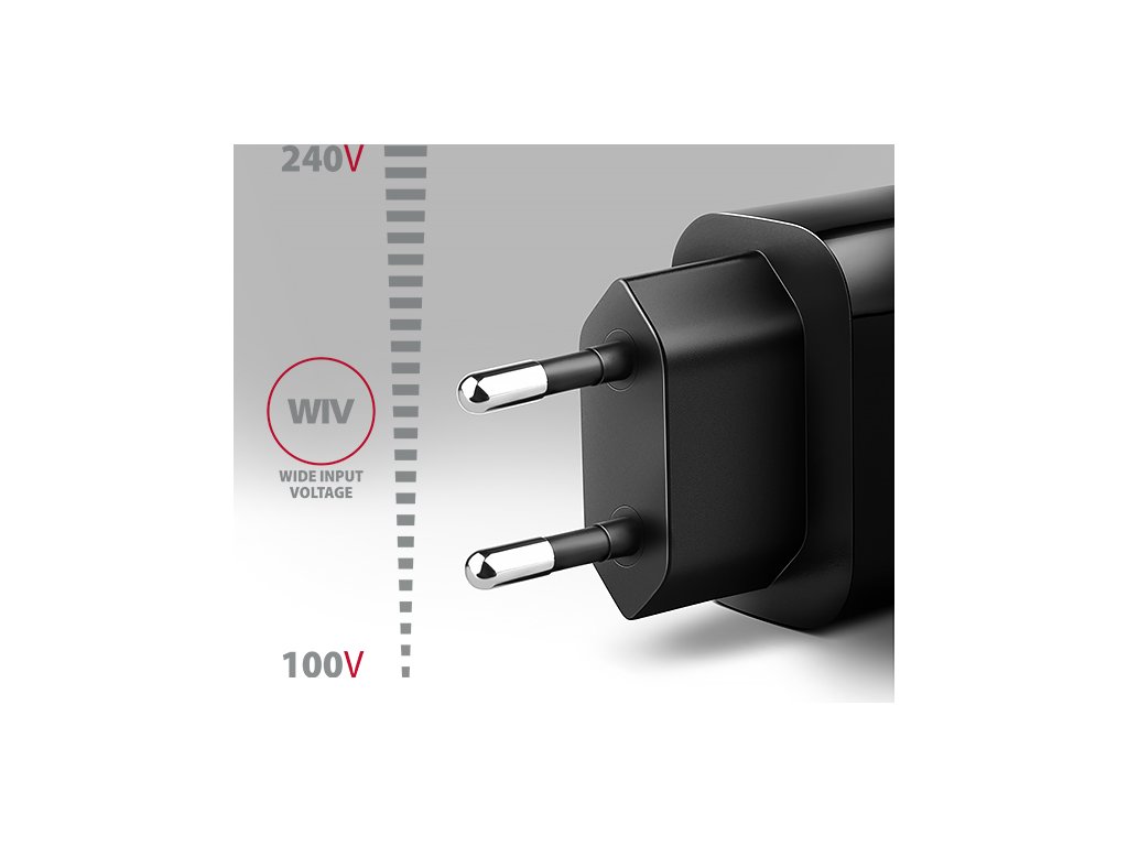 • Wide Input Voltage - funkce širokého rozsahu vstupního napětí, chrání adaptér proti podpětí a přepětí na vstupu a umožní použití více "národních napájecích standardů".