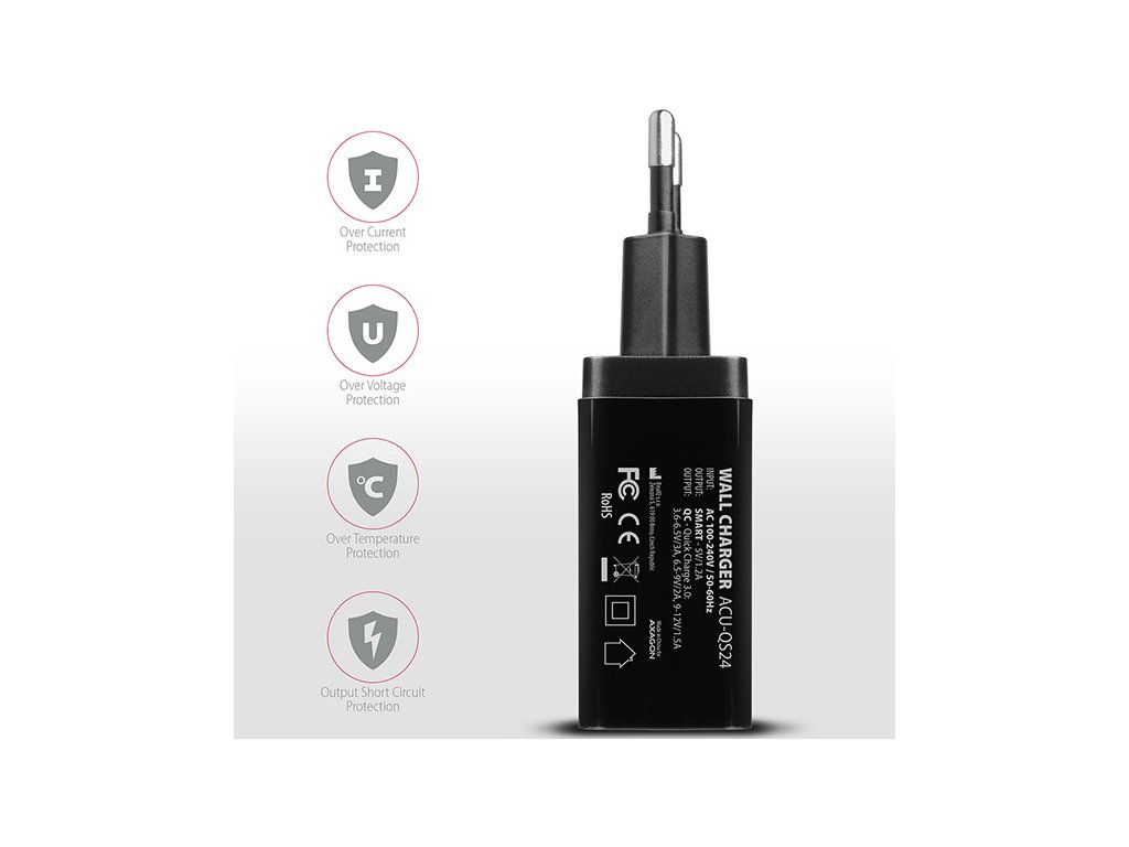• QC - rychlonabíjení zařízení s podporou Qualcomm Quick Charge 2.0 a Quick Charge 3.0.