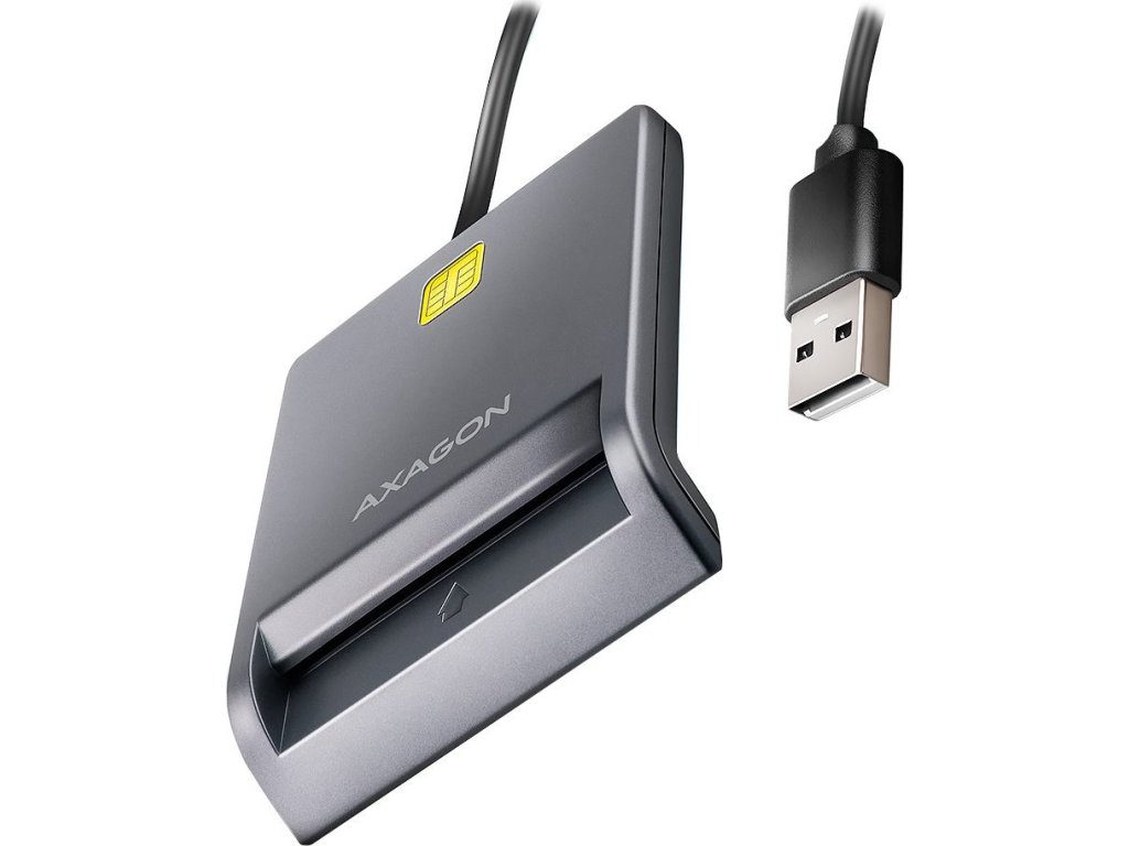 Kompaktní stolní čtečka Smart card / ID card AXAGON CRE-SM3T FlatReader s USB 2.0 rozhraním. Je vhodná zejména jako čtečka občanských průkazů pro použití s počítači, které disponují USB vstupem. Nejrozšířenější USB-A konektor zajistí připojení jak k novému, tak i staršímu počítači.