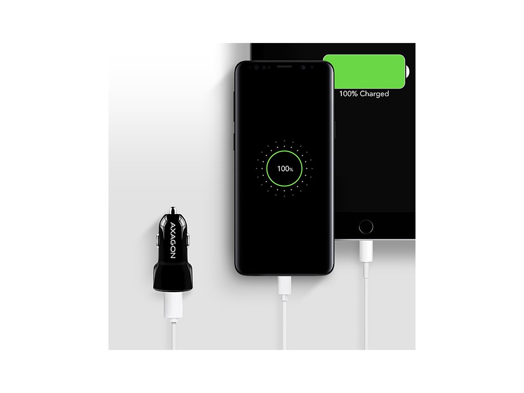Duální USB nabíječka do auta AXAGON PWC-5V5 pro nabíjení až dvou mobilních zařízení současně.