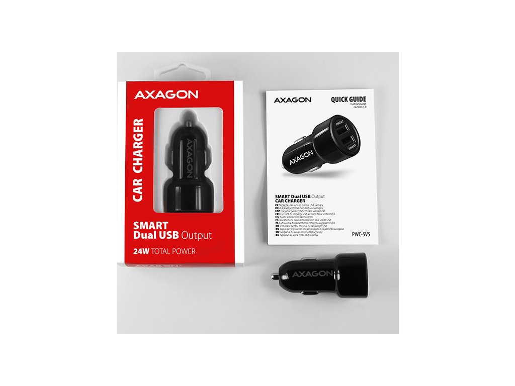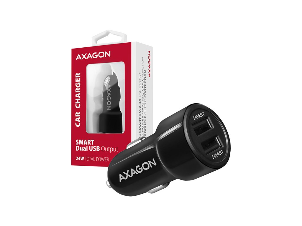 AXAGON PWC-5V5, SMART nabíječka do auta, 2x port 5V-2.4A + 2.4A, 24W