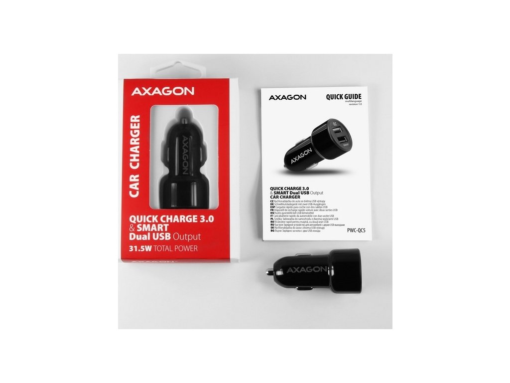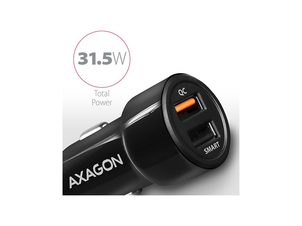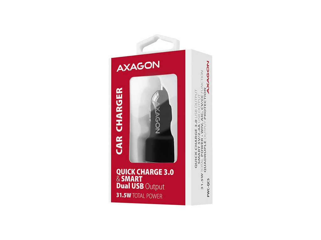 AXAGON PWC-QC5, QUICK a SMART nabíječka do auta, 2x port QC3.0/AFC/FCP + 5V-2.6A, 31.5W