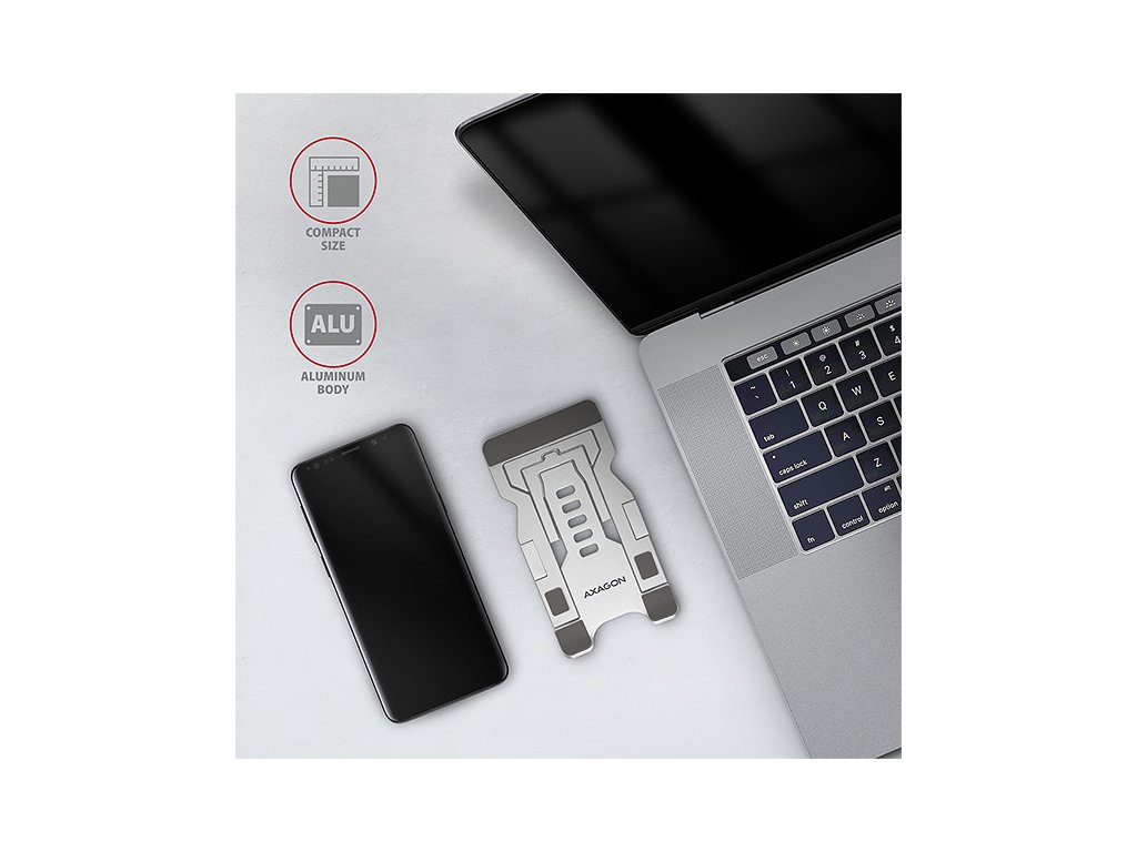 AXAGON STND-M, hliníkový stojan pro telefony a tablety 4" - 10.5", 5 nastavitelných úhlů