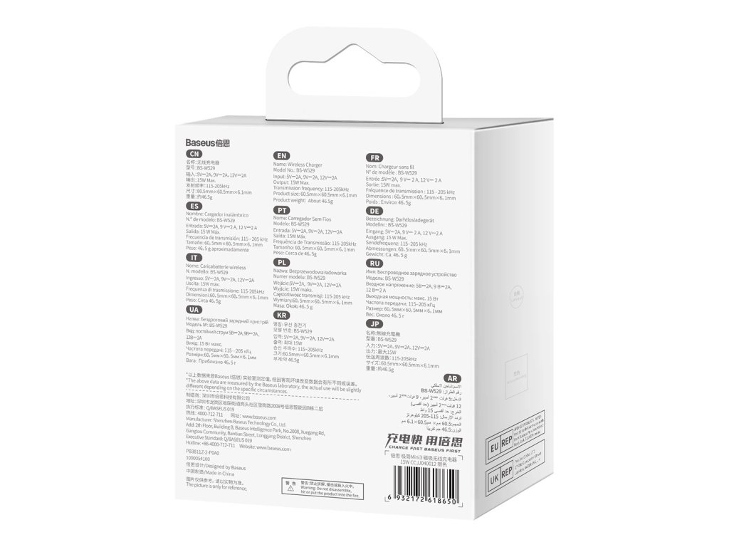 Baseus Bezdrátová nabíječka do sítě Simple Mini3 15W USB-C bílá