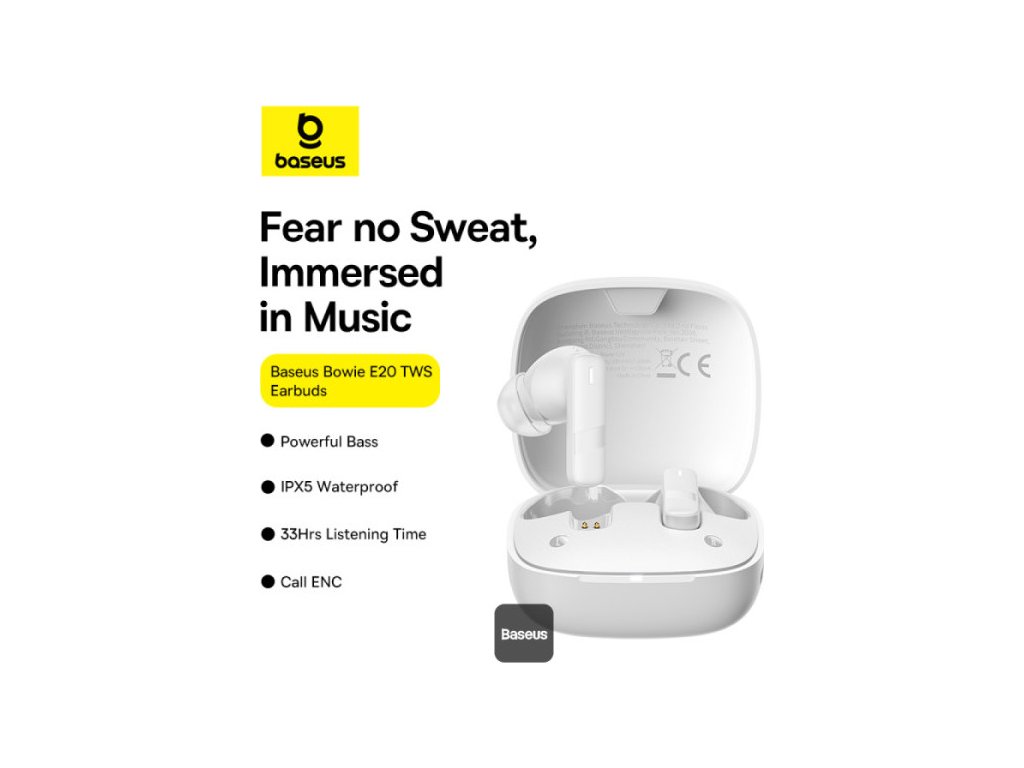 Skutečná bezdrátová sluchátka Baseus Bowie E20 se 2 mikrofony ENC, doba přehrávání 33 hodin