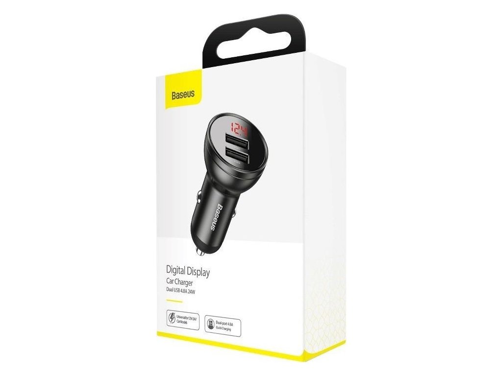 Baseus CCBX-0G Digital Display Dual USB car charger - autonabíječka se dvěma USB-A porty a vysokým výkonem pro rychlonabíjení - až 24W.