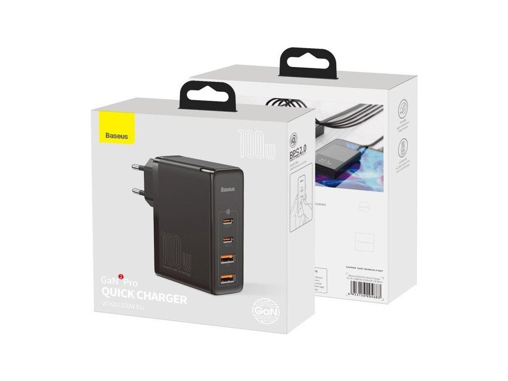 Baseus GaN2 Pro Quick Charger 2C + 2U 100W s výkonem až 100W a čtyřmi konektory - 2x USB Type-C, 2x USB-A.