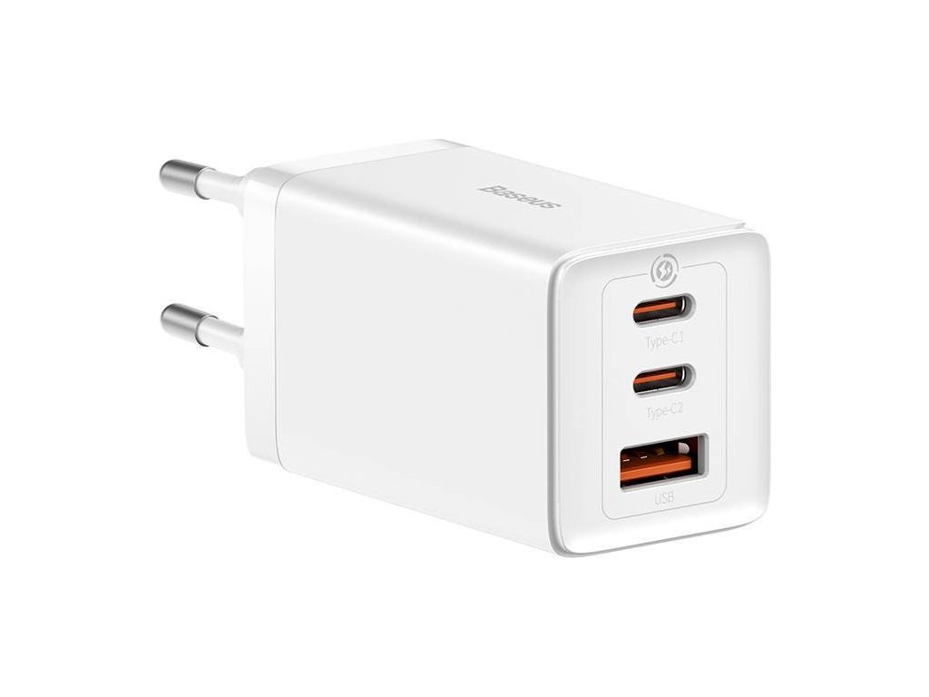 Baseus GaN nabíječka s maximálním výkonem až 65W, dvěma USB-C výstupy a jedním USB