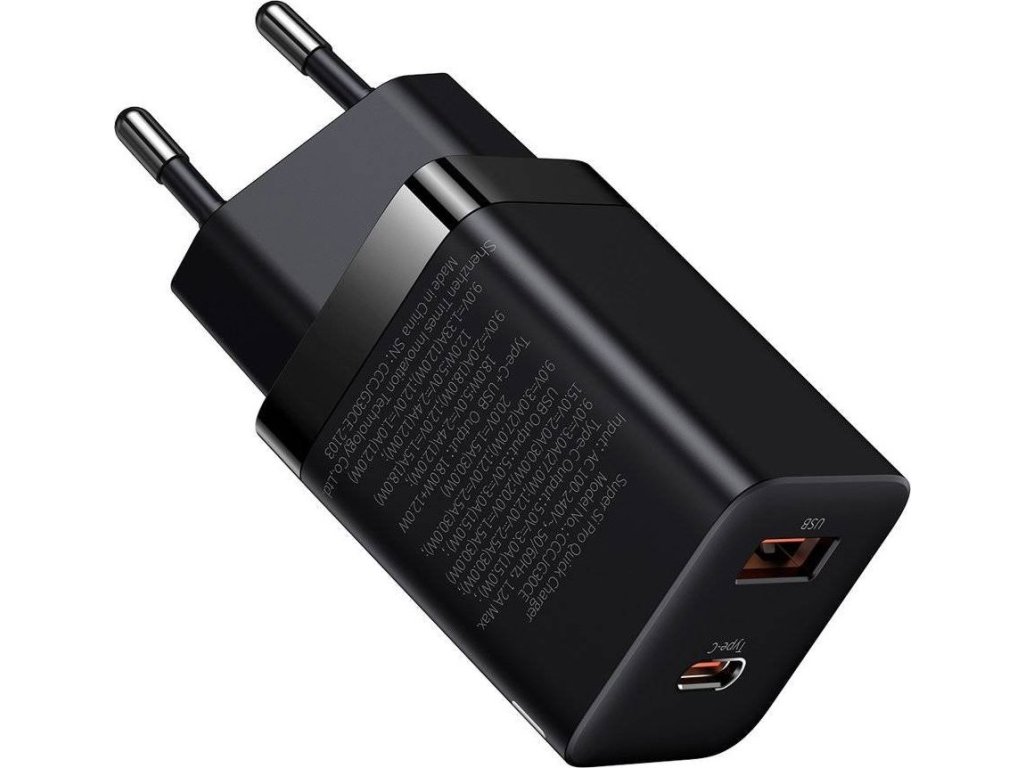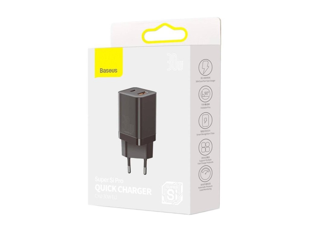 Baseus CCSUPP-E01 Super Si Quick Nabíječka USB + USB-C 30W Black