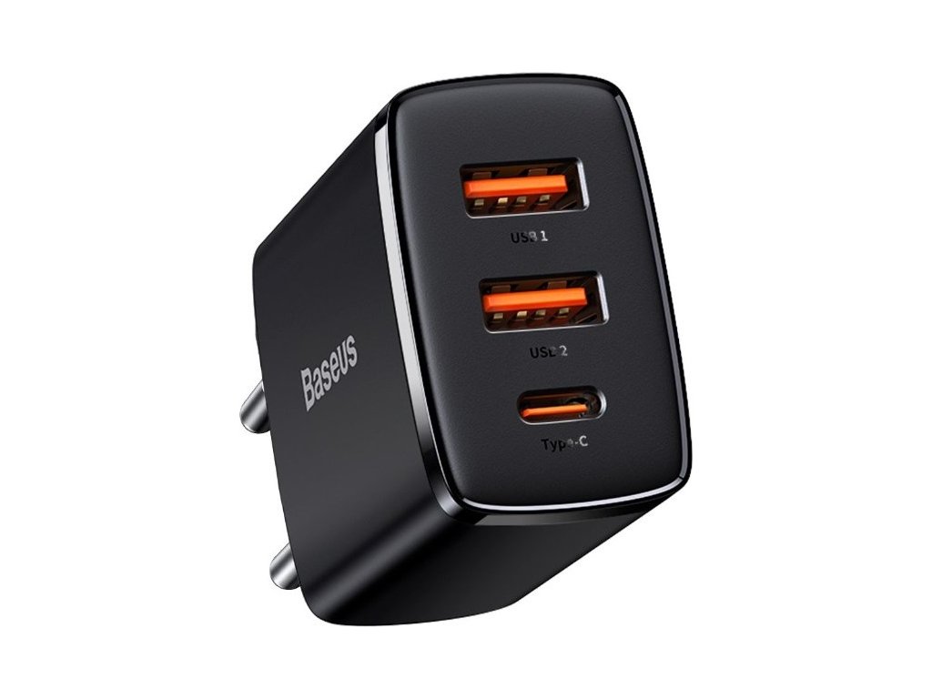 Baseus Compact Quick nabíječka se třemi výstupy. USB-C a dvěma USB.