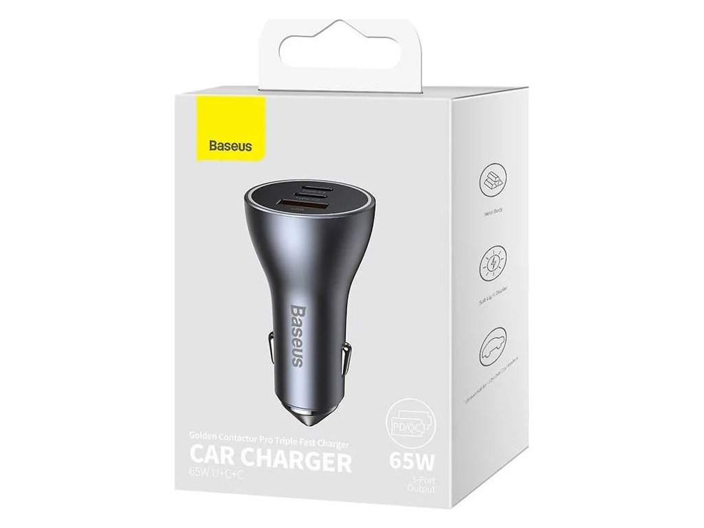 Baseus CGJP010013 Nabíječka do Auta Triple Quick Charger USB/USB-C/USB-C 65W Dark Grey