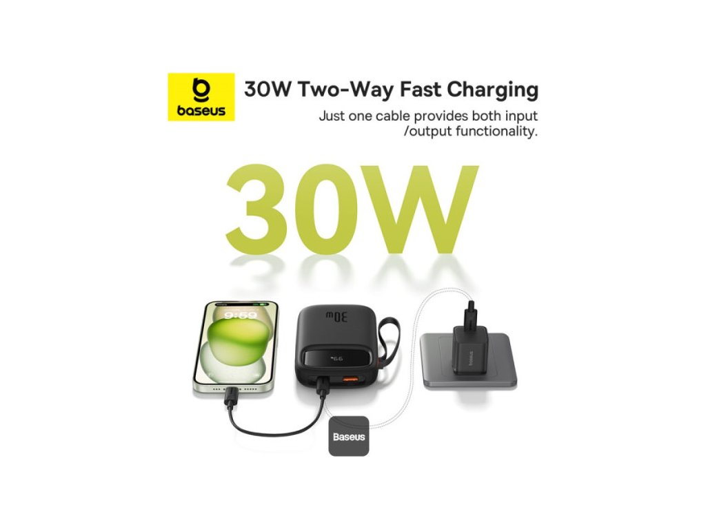 Baseus power banka Qpow 10000mAh 30W černá s USB-C kabelem