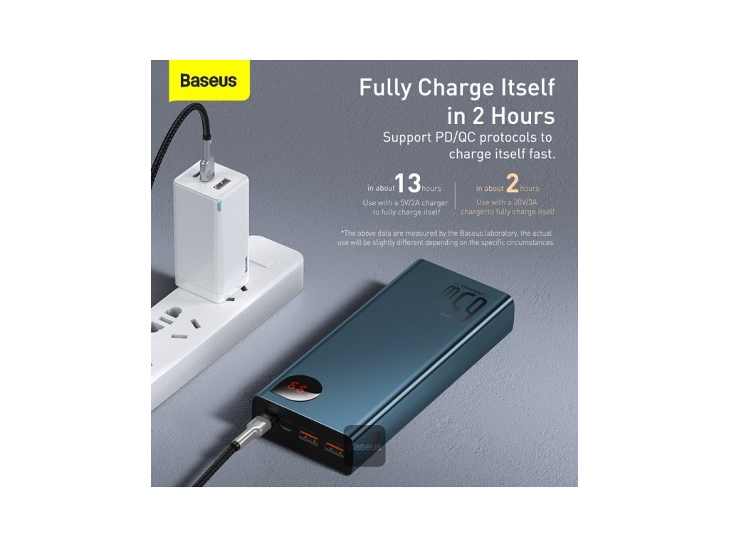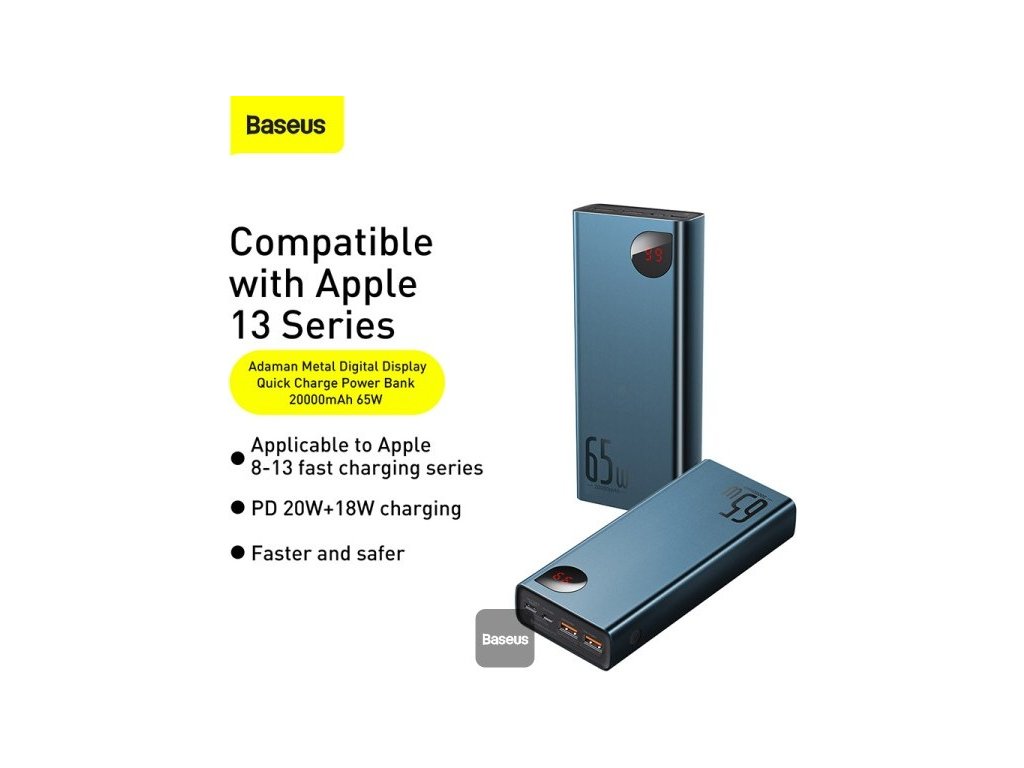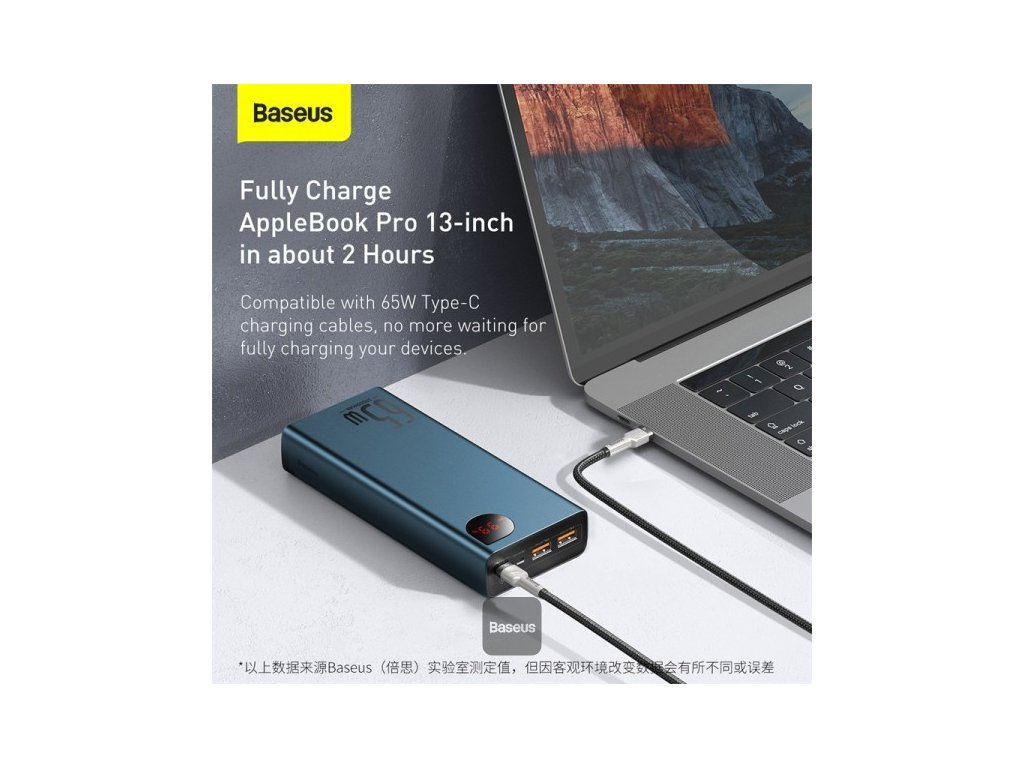 Baseus Adaman Metal Digital Display 20000mAh 65W Power Bank s rychlým nabíjením Podporuje rychlé nabíjení PD3.0+QC3.0 – modrá