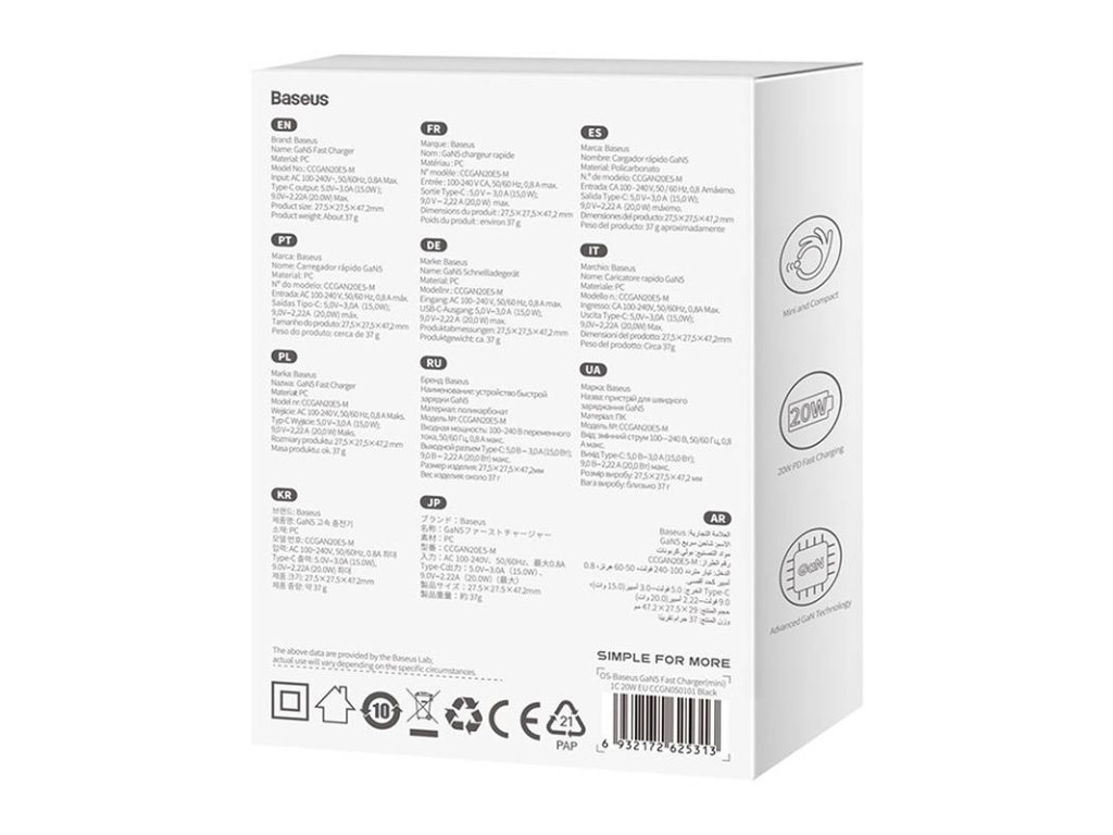 Baseus GaN5 20W mini síťová rychlonabíječka