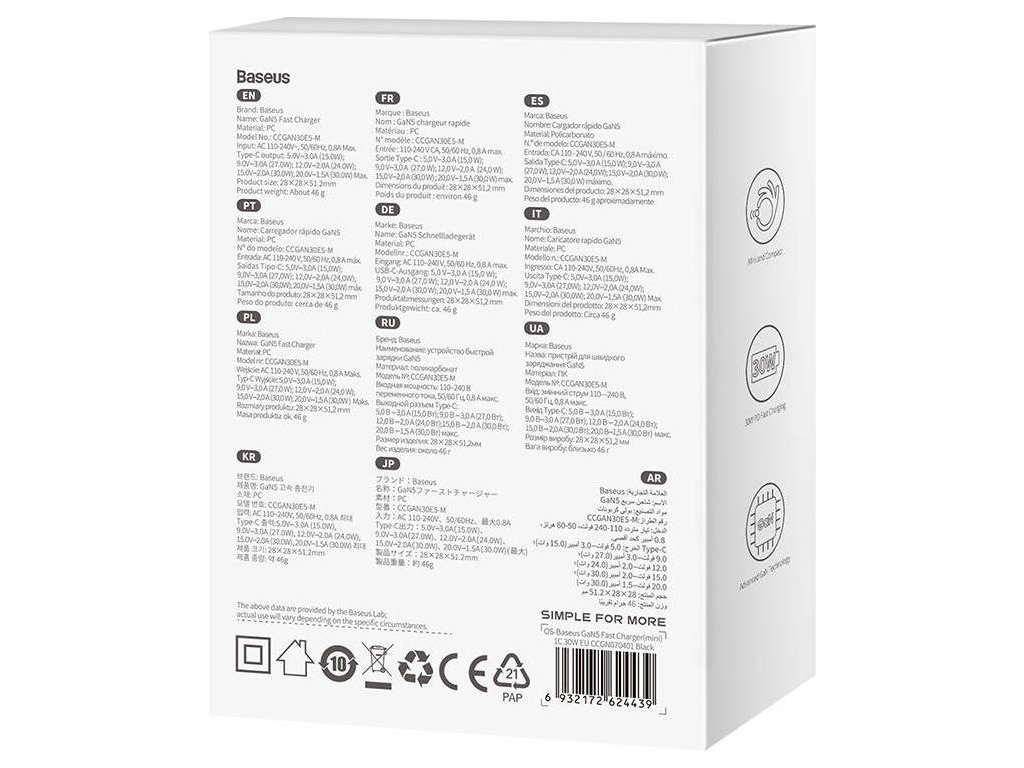 Baseus GaN5 30W mini síťová rychlonabíječka