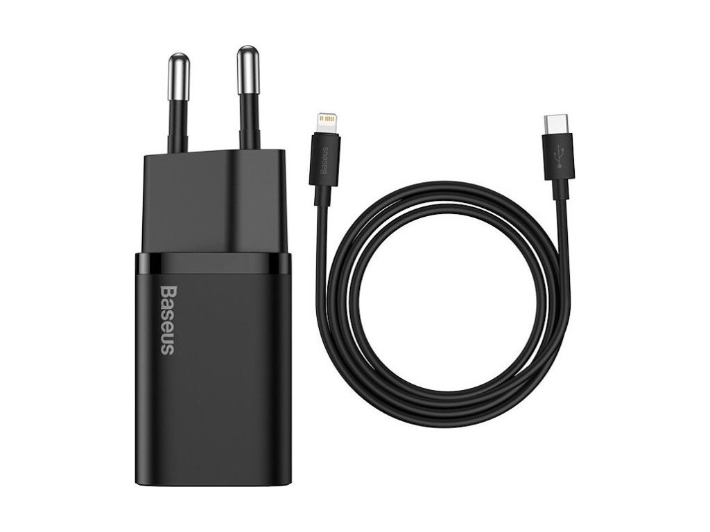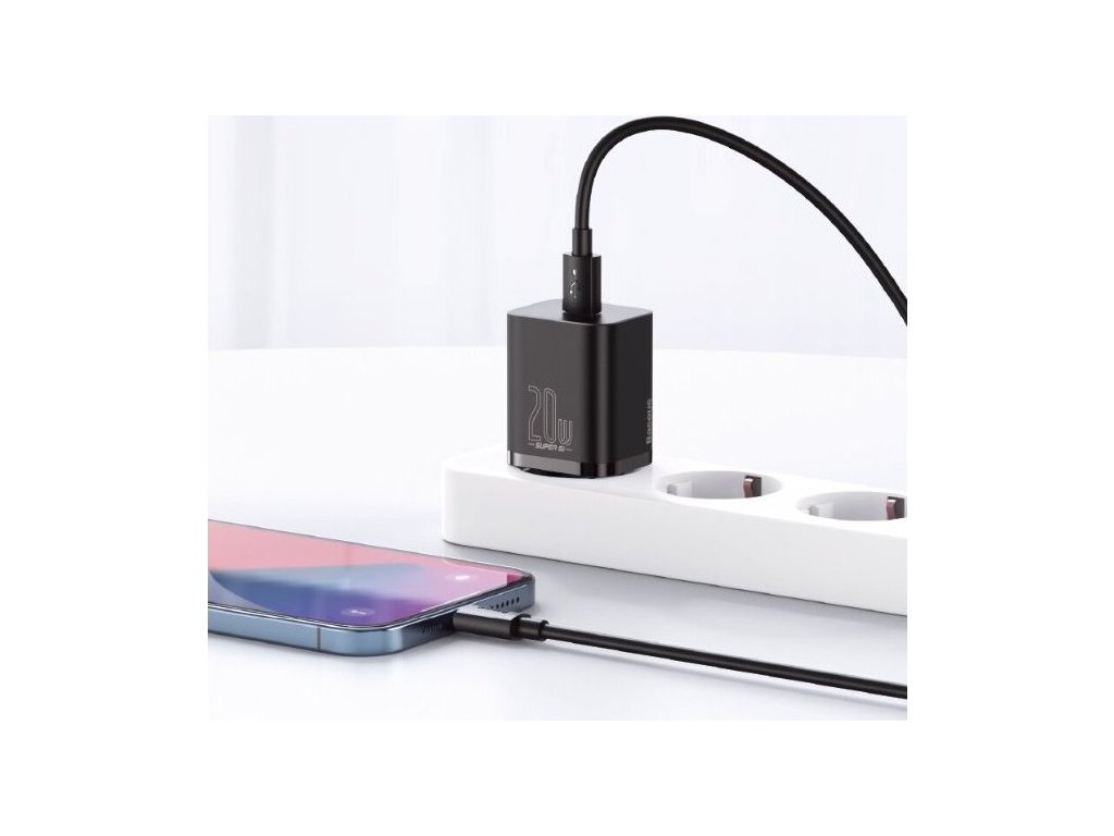 Baseus rychlonabíječka do sítě Super Si USB-C PD QC 20W černá s kabelem USB-C/Lightning 1m