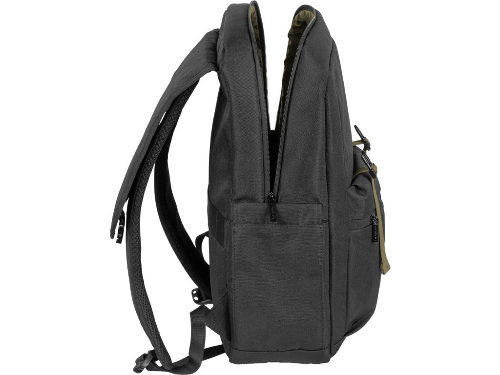 - Městský batoh o objemu 18 l z odolné a ekologické tkaniny vyrobené z recyklovaných PET lahví.