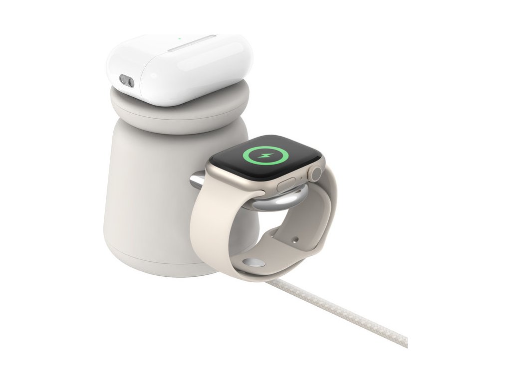 Tato obzvláště praktická nabíjecí stanice poskytuje 15W pro rychlé bezdrátové nabíjení vašeho iPhonu 12 a novějších modelů, Apple Watch 4 a novějších modelů a různých verzí AirPods. Díky technologii MagSafe můžete svůj iPhone bez obav položit na nabíjecí podložku a nabíjet ve správné poloze. V pohotovostním režimu můžete svůj iPhone používat v různých orientacích.