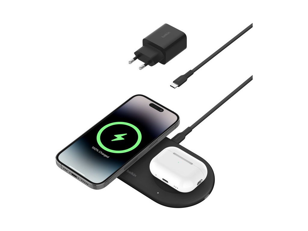 Tato nabíječka je obzvláště praktická, protože umožňuje nejen rychle bezdrátově nabíjet váš iPhone 15 výkonem 15 W, ale také vaše AirPods nebo jiné zařízení výkonem 5 W přes port USB-C®. Díky magnetické technologii Qi2 můžete svůj iPhone pohodlně umístit na nabíjecí plochu tak, aby optimalizovalo napájení a chránilo baterii pro prodloužení její životnosti.