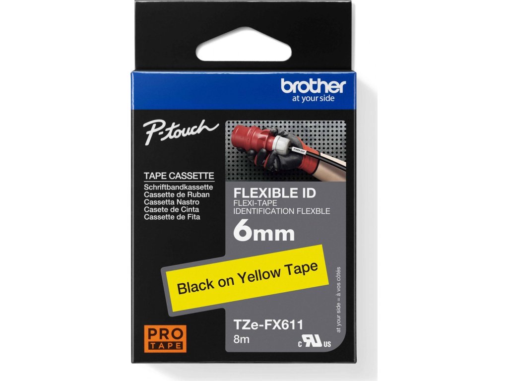 BROTHER flexibilní páska TZE-FX611/ žlutá-černá/ 6mm