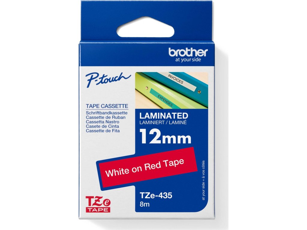 Originální kazeta s laminovanou páskou TZe-435 kompatibilní s širokou řadou tiskáren Brother P-touch je zvláště všestranná díky své snadno čitelné bílé a červené barvě - ideální pro domácnost, kancelář a další pracoviště.
