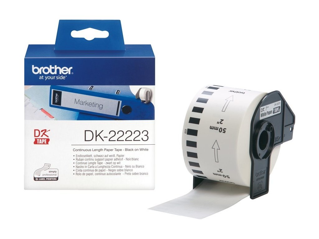 Originální Brother DK-22223 kontinuální papírová páska – černá na bílé, 50 mm šířka
