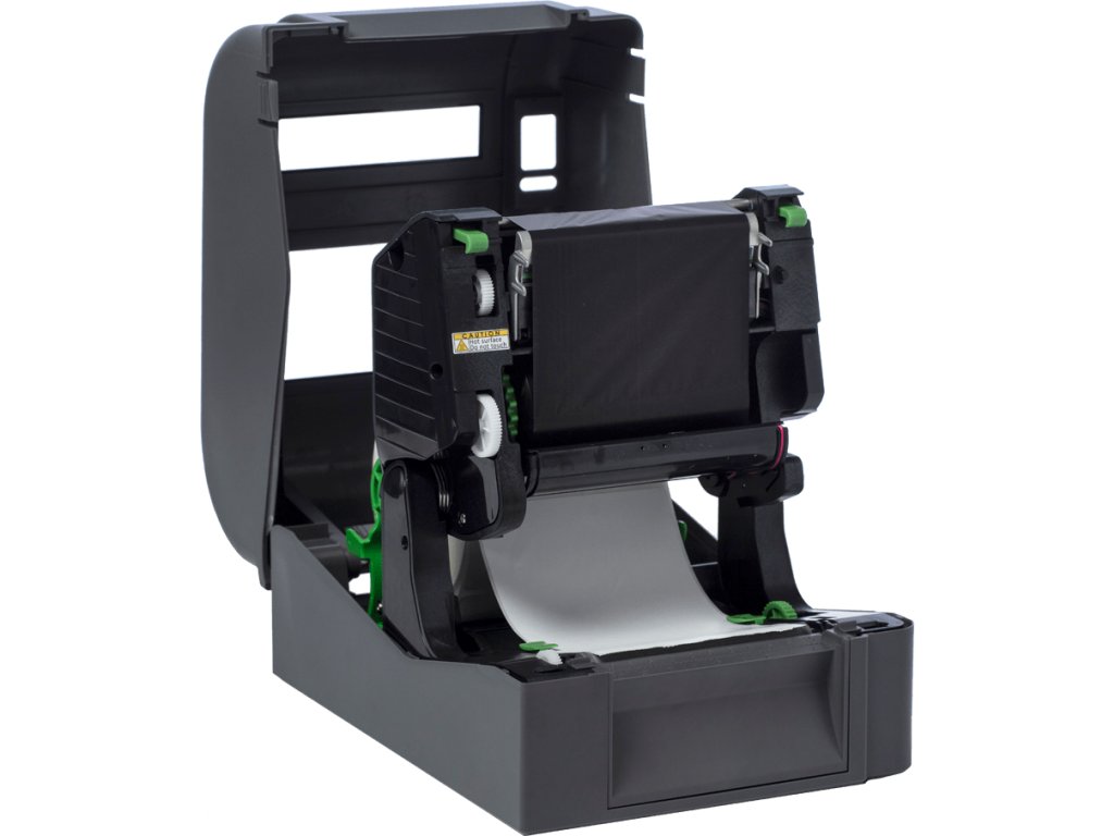 Tato univerzální tiskárna štítků používá média až do šířky 112 mm / 4,41 palce a tiskne rychlostí 203 dpi. Její termotransferové pásky s vysokou kapacitou vyžadují méně časté výměny a zajišťují maximální dobu provozu. Standardně se dodává s rozhraním USB, Ethernet a sériovým RS-232C pro zajištění kompatibility s vaší infrastrukturou. Vysoká rychlost tisku až 152 mm / sec. (6 ips) ušetří čas a pro snadnou integraci se stávajícími systémy využijete některý z populárních příkazových jazyků tiskárny.